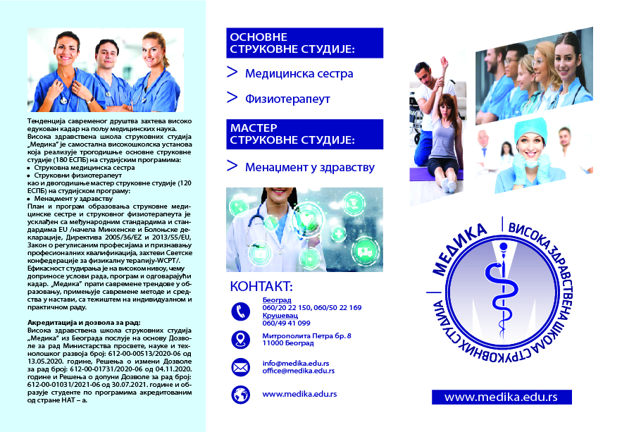 Visoka zdravstvena škola strukovnih studija „Medika“realizuje studije na dva nivoa: